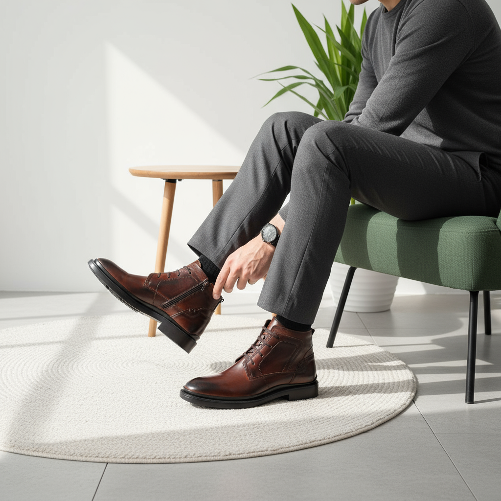 Izrađene od vrhunske prirodne kože u bogatoj konjak nijansi, ove polu-čizme nastaju gotovo u potpunosti ručnom izradom. Svaki detalj prolazi kroz ruke iskusnih majstora, što im daje autentičnost i trajnu vrednost.